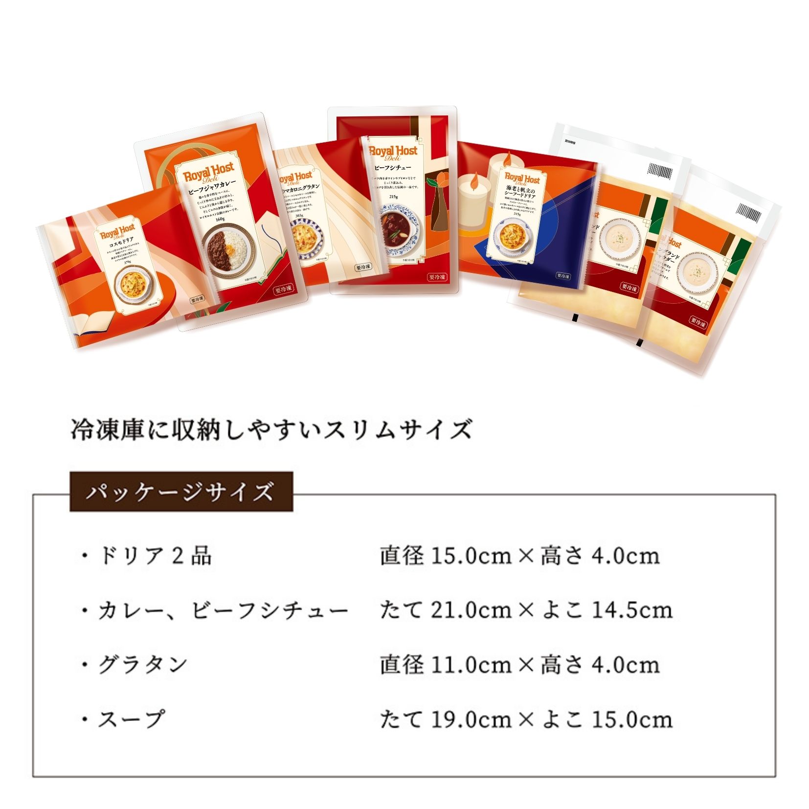 ロイヤルホストの人気メニューをご家庭でお楽しみいただける、洋食ギフトセットです。「コスモドリア」や「海老と帆立のシーフードドリア」、「ビーフジャワカレー」など、こだわりの品々を詰め合わせました。ご家庭への贈り物や大切な方へのご挨拶にも最適です。