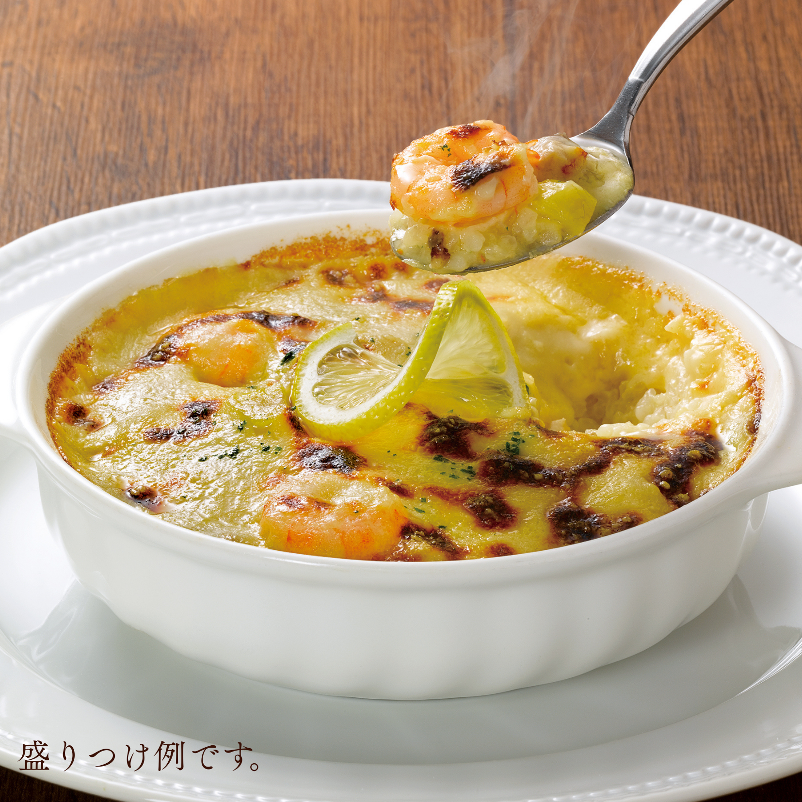 チキンの旨みが溶け込んだコクのある特製ドリアソースに、海老や栗などを加え焼き上げた、ロイヤル伝統のドリアです。