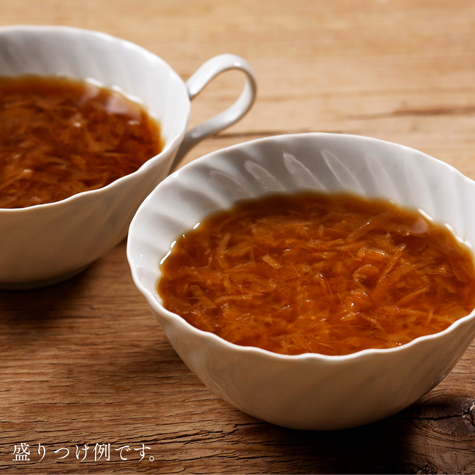 自社工場でじっくり煮込んで琥珀色に仕上げたコンソメスープと、飴色になるまで炒めた玉ねぎをあわせたスープです。