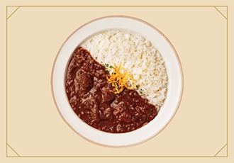 様々なスパイスを使い、黒みがかった色が特徴のスパイシーでさらりとした辛口のカレーです。